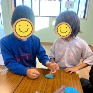 今日は洗濯のりやホウ酸液を使ってスライム作りをしました