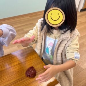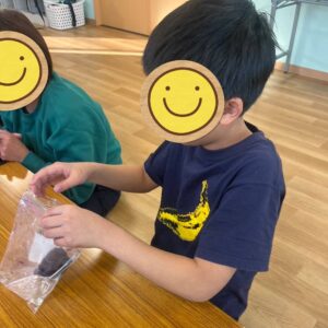 絵の具で色をつけたりこねたりして、オリジナルのスライムを完成させました✨