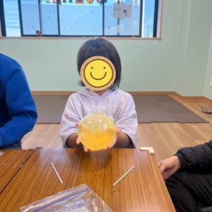 今日は洗濯のりやホウ酸液を使ってスライム作りをしました